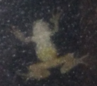 明かりが灯る窓のガラスには夜になると近くの草むらからアマガエルがやってきて、