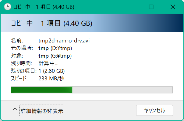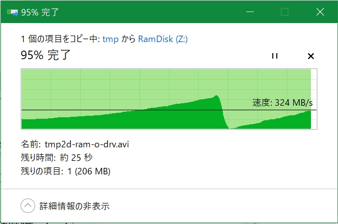Win 10 でファイルコピー時↓ 速度変化のグラフが表示される↓