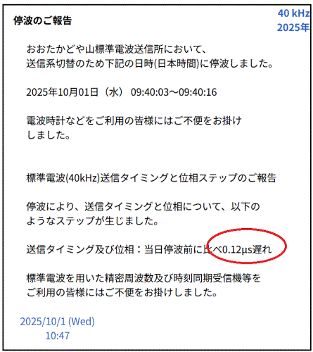 電波時計の送信側に障害があった可能性もある。