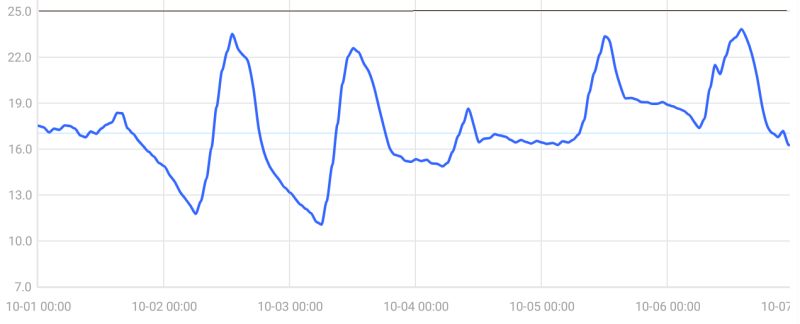 夜には外気温は 15度近くまで下がるはずなんだが、