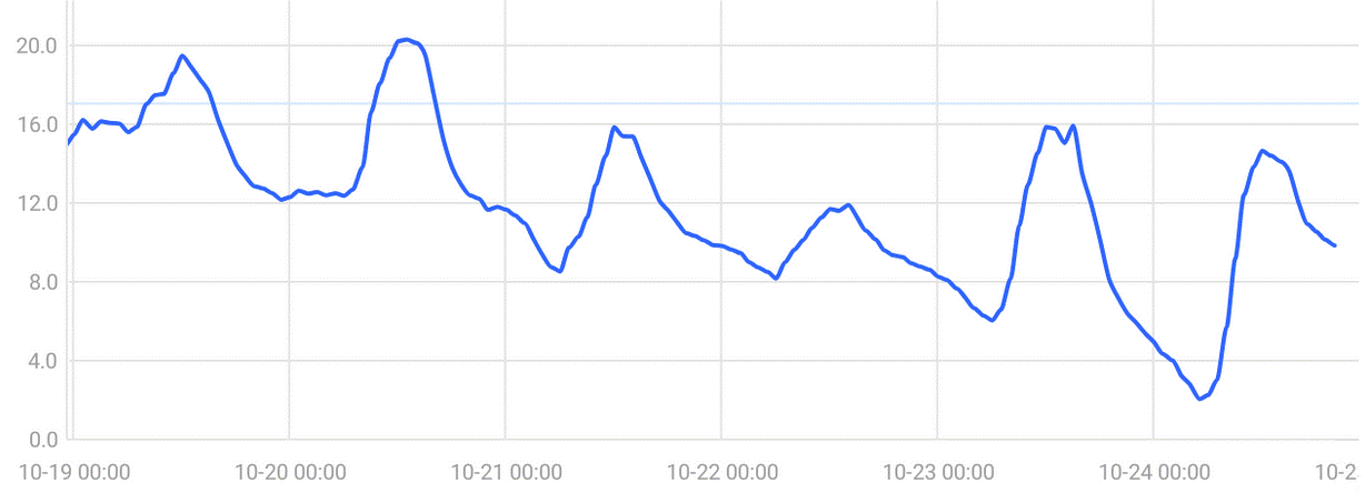 夜には外気温は 15度近くまで下がるはずなんだが、